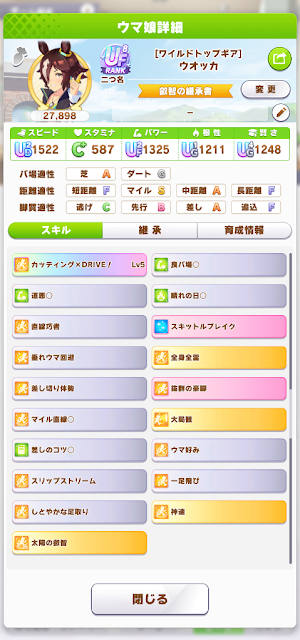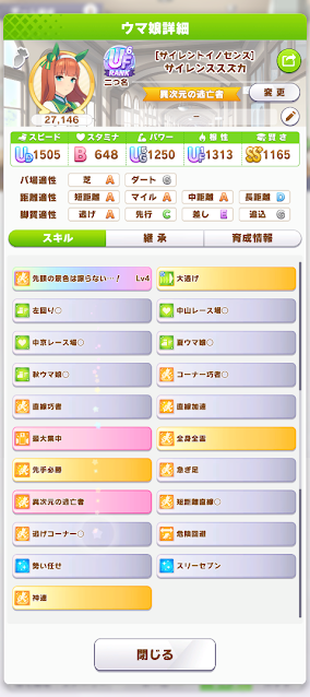 このウオッカ育成終了時にスキルPT確か3000超えてたはずです。