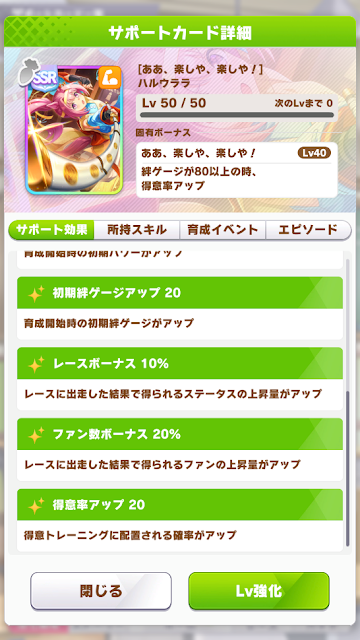 配布サポートカード パワーSSRハルウララの性能