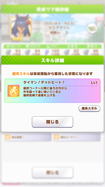 追込直線、コーナーあるので追込の因子周回にはいいかもしれません。