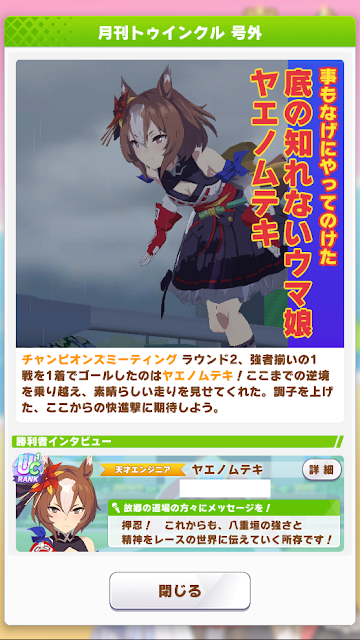 最終戦全員UC超えでやばいと思いましたが、中距離Sがいないという幸運で勝てました。
